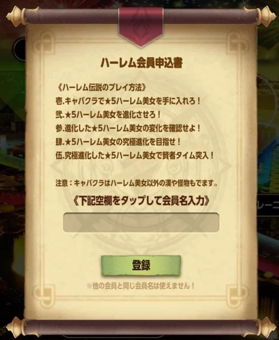 会員名(名前)は他のプレイヤーと同じ名前は使えません。