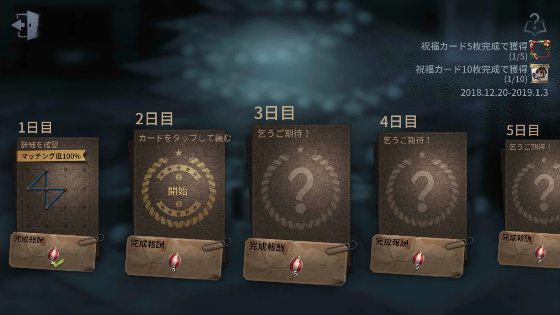 アイデンティティ5(第五人格/IdentityV)のクリスマス&新年イベント「カーニバルの幻想」について書いています。イベントの一筆書き攻略手順や概要、報酬について解説しているので、イベントをプレイする際の参考にしてください。