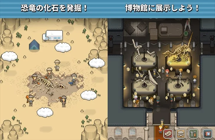 『ボクと博物館』は、恐竜の化石を発掘して博物館を経営するドット絵経営シミュレーションです。