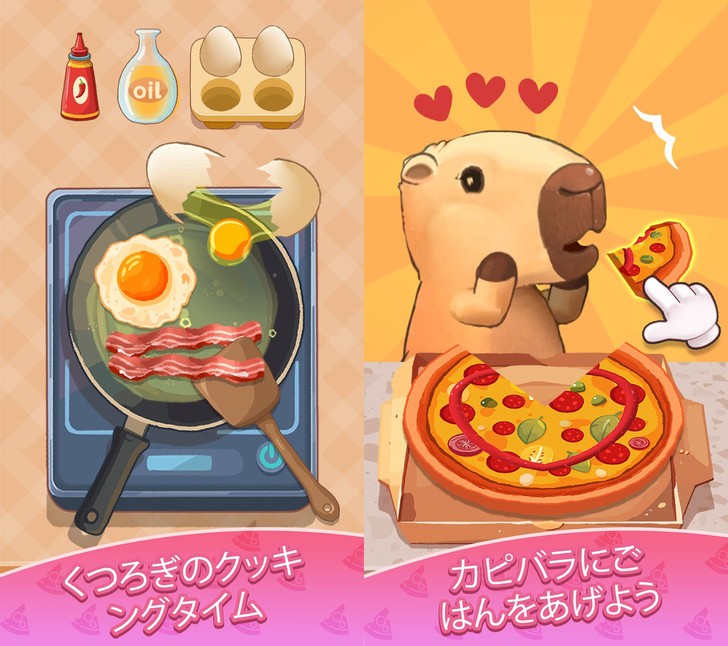 - 可愛いし楽しい!キャラクターも料理も全部可愛くて、操作も簡単でハマります。暇つぶしに最適ですよ。