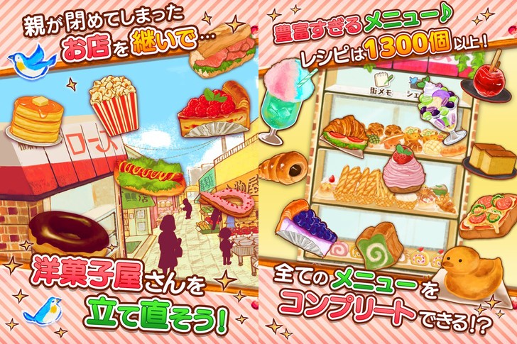 自動でお金が貯まる家具を設置したり、タップ連打でお客を呼び込み、新レシピを習得していく経営ゲームです。