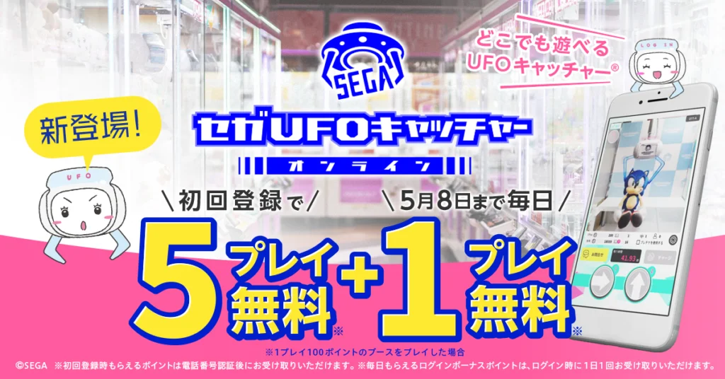 「セガUFOキャッチャーオンライン」は、2022年4月11日からセガ公式よりリリースされているオンラインクレーゲーム(UFOキャッチャー)アプリです。