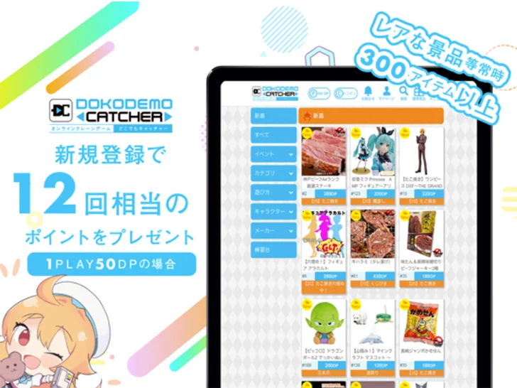 「どこでもキャッチャー」は、株式会社DC7運営のオンラインクレーンゲームです。