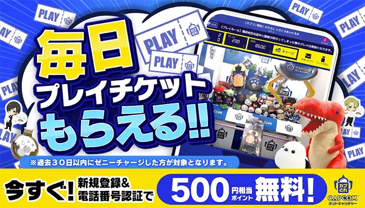初回500ゼニー無料配布。課金者にプレイチケット配布や、CAPCOM ID登録者にもボーナスポイントが付与されます。
