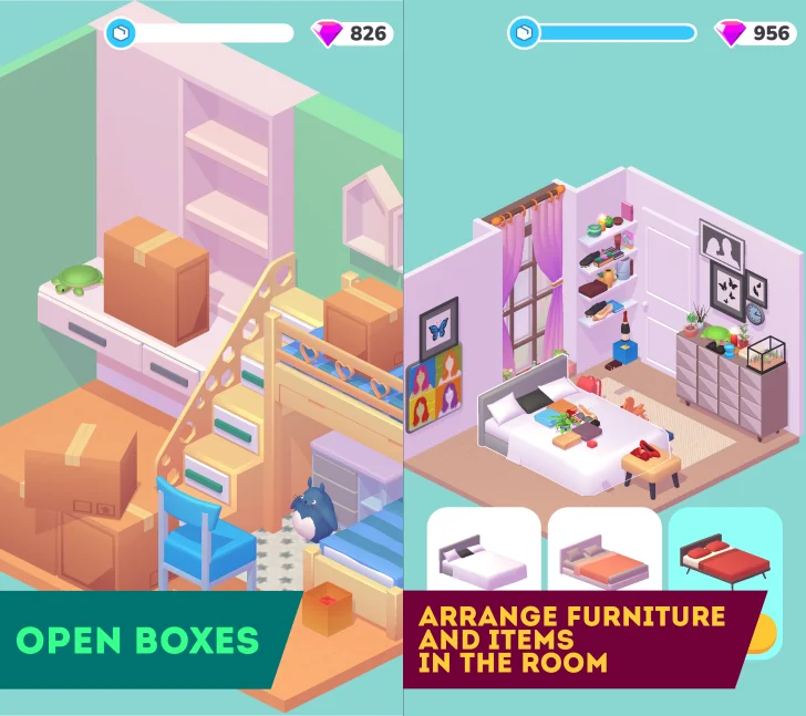 - センスを磨ける家具のデザインが洗練されており、配置後の完成図を眺めるだけで最高の達成感を味わえるゲームです。