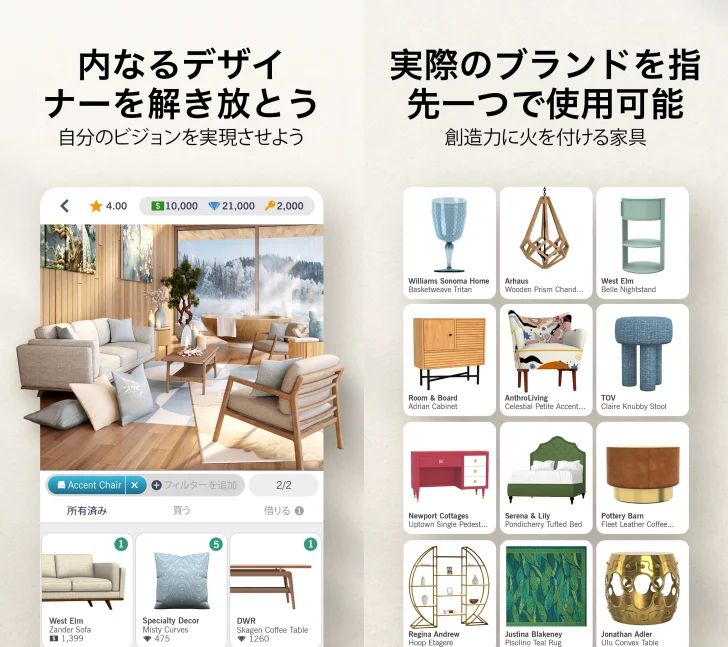 『Design Home』は、実在する高級ブランドの家具を使って、理想の空間を作り上げるライフスタイルシミュレーションです。