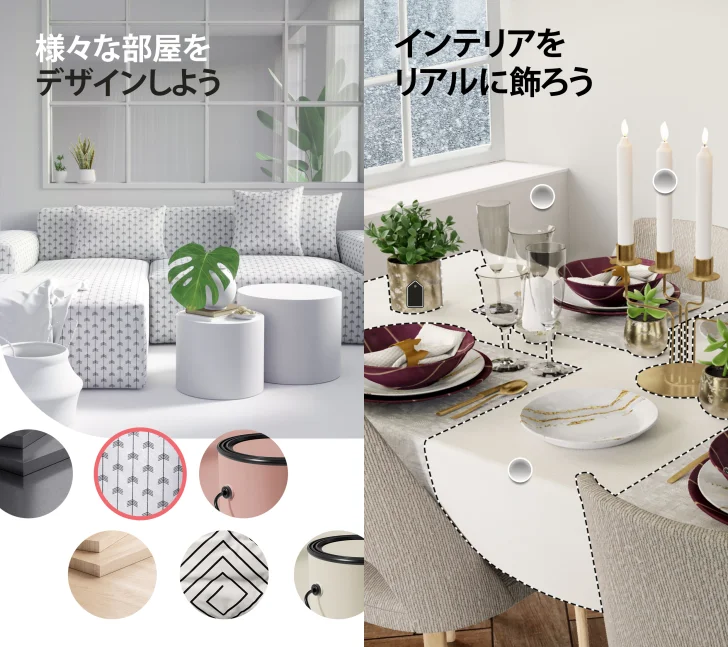 壁や床の質感を数千以上の素材から選び、理想のハウジングを追求できますよ。