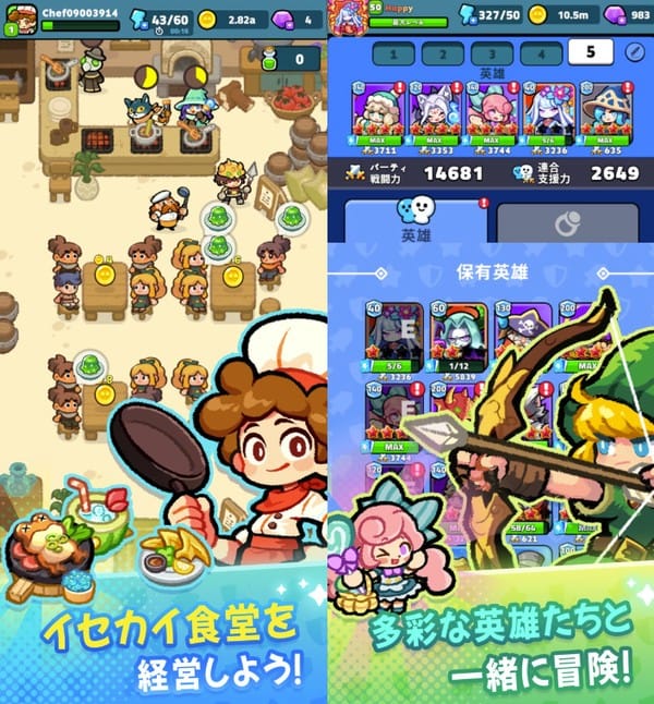 - 経営と戦闘の融合バトルで食材を集めて料理を作り、店を大きくするサイクルが楽しい。放置で稼げるのも手軽で良いですね。