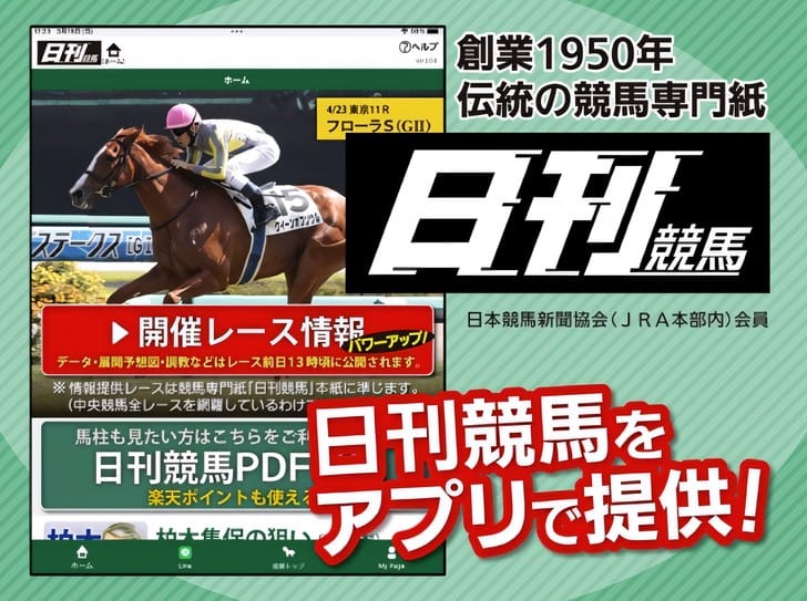 『日刊競馬』は、競馬専門紙の情報を基に、予想から馬券購入まで完結できる競馬情報アプリです。