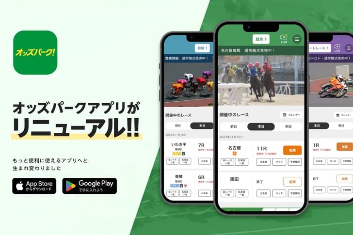 『オッズパーク』は、地方競馬・競輪・オートレースのレース予想から、馬券の購入までをスマホ一つで完結できる公営競技投票サービスです。