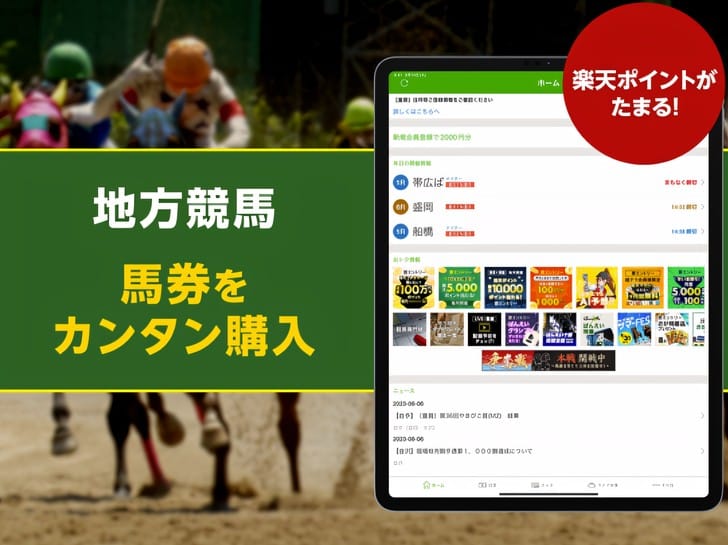 『楽天競馬』は、南関東4競馬場や、ばんえいを含む地方競馬全場の馬券が購入できる競馬投票アプリです。