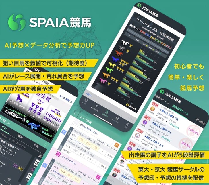 『SPAIA競馬』は、AIによる高精度な予想や豊富なデータ分析機能で、中央・地方競馬の馬券購入までをサポートする競馬予想アプリです。