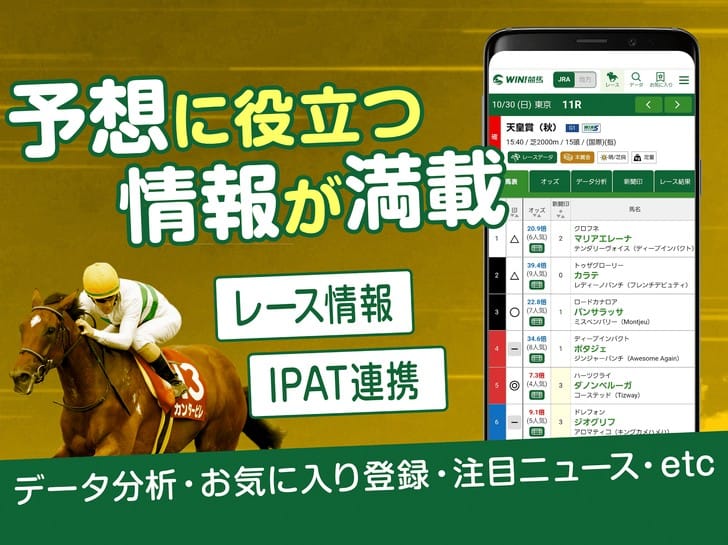 『WIN!競馬』は、JRA(中央競馬)と地方競馬の全レースに対応し、予想から馬券購入までを一手に行える競馬総合アプリです。