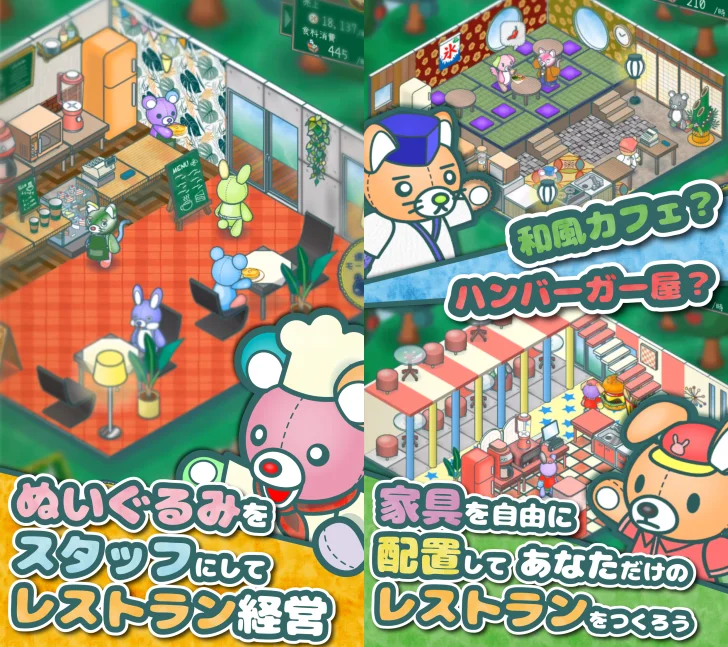 - 癒し系経営シミュレーションコメディチックな世界観と可愛いキャラが特徴で、とにかく癒される経営ゲームです。