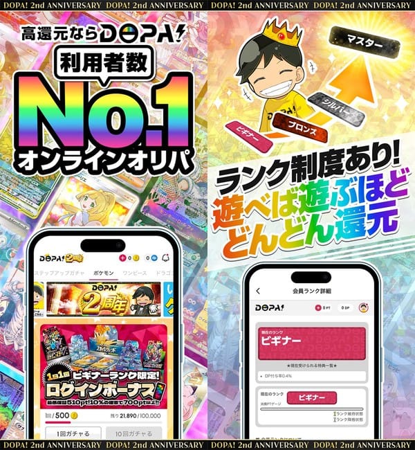 『ドーパ』は、ポケカや遊戯王などの公式トレカをスマホで手軽に引けるオンラインオリパアプリです。