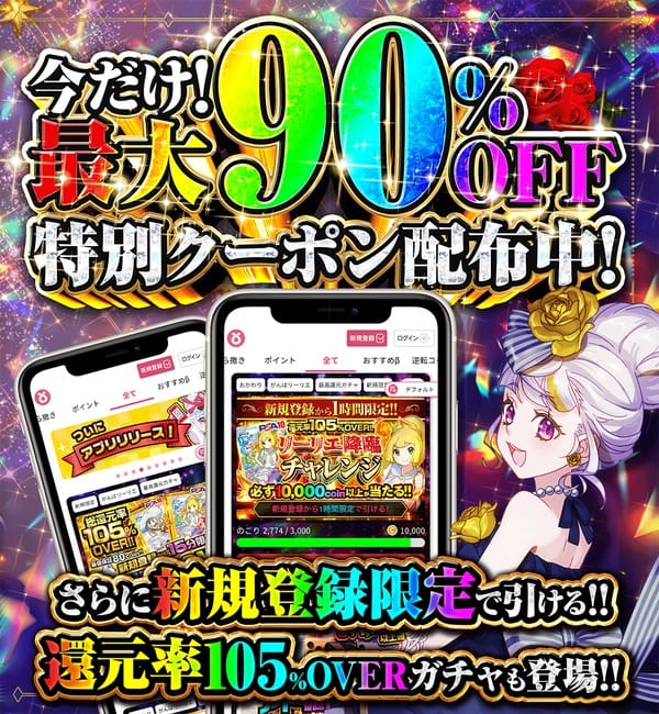 アド確率70%超えのガチャや、入手困難な限定カードなど、高還元なラインナップが充実していますよ。