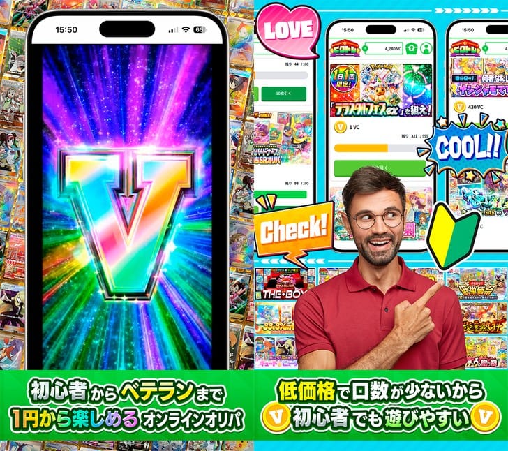 『ビクトレ』は、ポケモンやワンピースのレアカードが自宅で手に入るオンラインオリパサービスです。