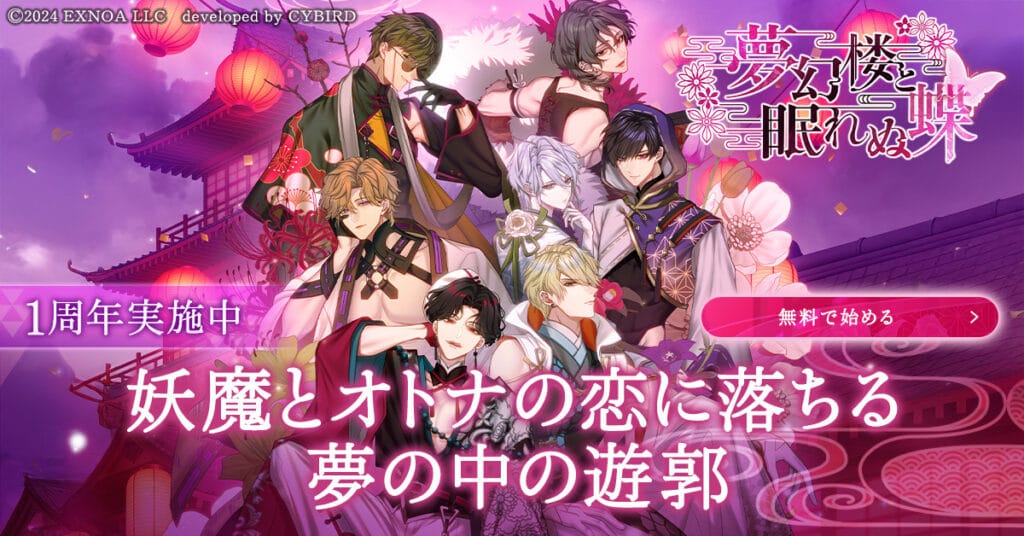 『夢幻楼と眠れぬ蝶』は、不眠に悩む主人公が夢の中の遊郭に迷い込み、妖魔たちと愛を育む恋愛シミュレーションです。