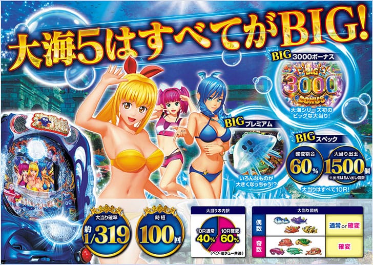 『P大海物語5』は、ホールで不動の人気を誇る海物語シリーズの最新作をどこでも遊べるパチンコシミュレーターです。