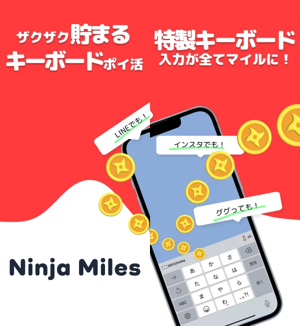 『ニンジャマイルズ』は、スマホで文字を入力するだけでマイルが貯まり、お小遣い稼ぎができるキーボードポイ活アプリです。
