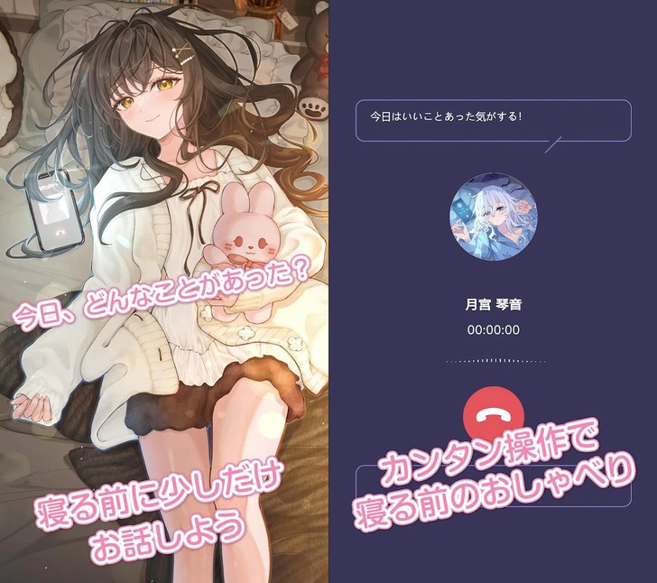 かわいい美少女やネコちゃんのAIとチャットや通話で眠くなるまでおしゃべりを楽しめます。