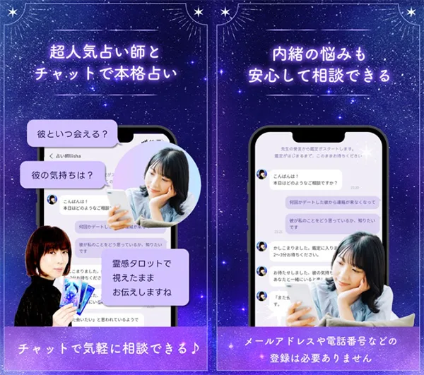 『Stella』は、有名占い師にチャットや電話で直接、恋愛や人間関係の悩みを相談できるオンライン占いアプリです。