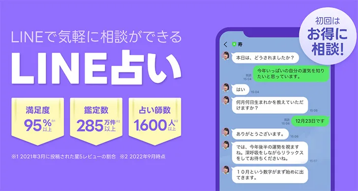 『LINE占い』は、占い師1,600名以上が在籍する国内最大級の占いコンテンツプラットフォームです。