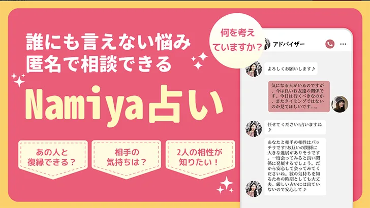 『Namiya』は、人間関係や恋愛、仕事などの悩みを、プロの占い師に相談できる占い相談アプリです。