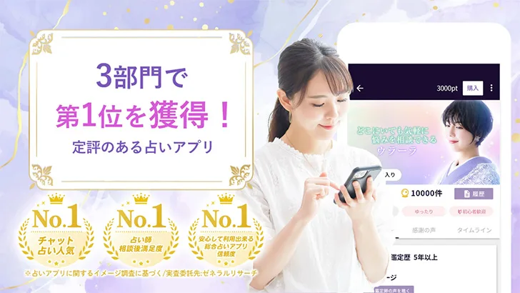 『ウラーラ』は、1200名以上の占い師にチャットや電話で悩みを相談できる占い相談プラットフォームです。