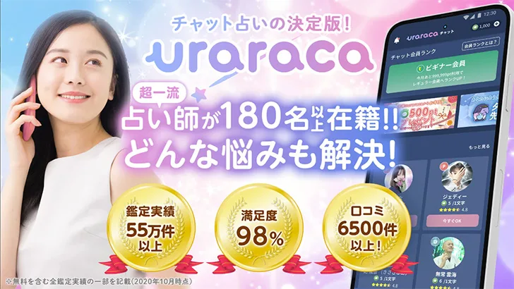 『uraraca』は、恋愛や仕事など、人に言えない悩みを占い師に直接相談できるチャット占いアプリです。