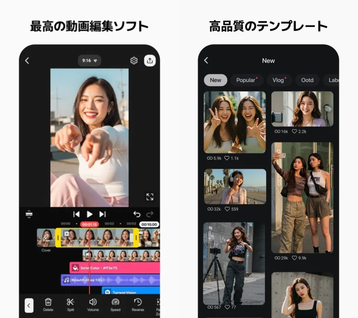 直感操作でSNS動画やVlogが作れる編集アプリ