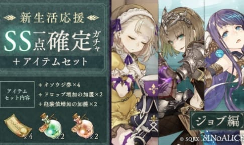 シノアリス【シノアリス】新生活応援SS1点確定ガチャ+アイテムセットの詳細 2019.04.04 クロシノアリスの『新生活応援SS1点確定ガチャ+アイテムセット』をまとめています。 開催期間、ピックアップ内容などを記載しているので参考にしてください。 開催期間 ジョブピックアップ 前衛武器ピックアップ 後衛武器ピックアッ…