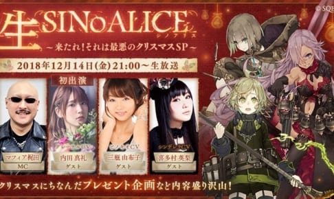 シノアリス【シノアリス】生シノアリス『それは最悪のクリスマスSP』詳細情報 2018.12.14 クロ公式生放送、『生SINoALICE』で発表された最新情報などを記載しています。 配布アイテムや今後の情報なども記載しているので参考してください。 生SINoALICE放送時刻 放送時刻 12月14日21:00~22:00…